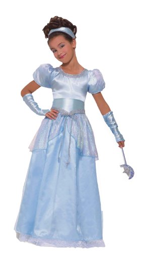 Forum Novelties Children's Cinderella Costume, LargeForum Novelties Children's Cinderella Costume, Large Detail : Does your daughter think she gets stuck with all the nasty chores? And what about when her evil stepsisters got to go to the ball-and not her? Your daughter is certain to take Prince Charming by surprise with her pumpkin carriage! This light blue fairy tale dress has a sheer blue layer of outer skirting, an additional layer of iridescent blue hip flares, and iridescent puff sleeves. A belt that matched the neckline is also included, as well as a light blue headpiece and glovelettes. Don't forget your glass slippers!